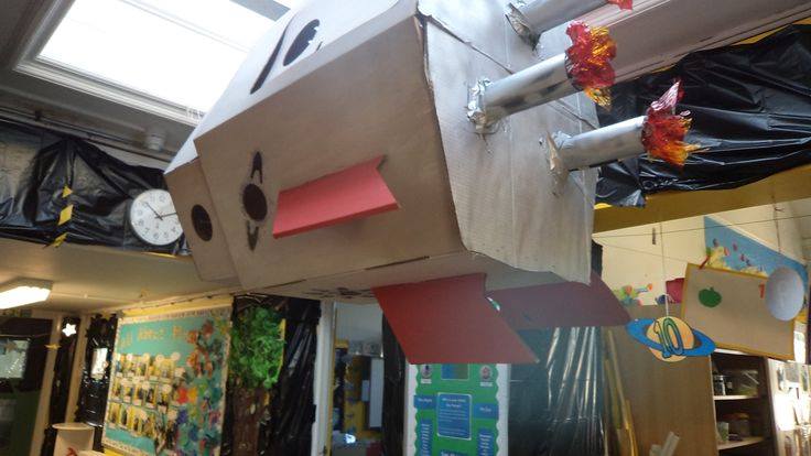This was our hook at the start of a term, children came back after their holidays to a blackened corridor and a space rocket hanging from the ceiling, the doors to the rocket were closed, children investigated how the rocket had crashed into our classroom. The following week the children came back from the weekend to find the door was partially open and footprints had appeared… the children used the book corner to research what had come out of the rocket…. aliens, astronaut, maybe beegu? awesome start to the topic! Parents were hooked too!
